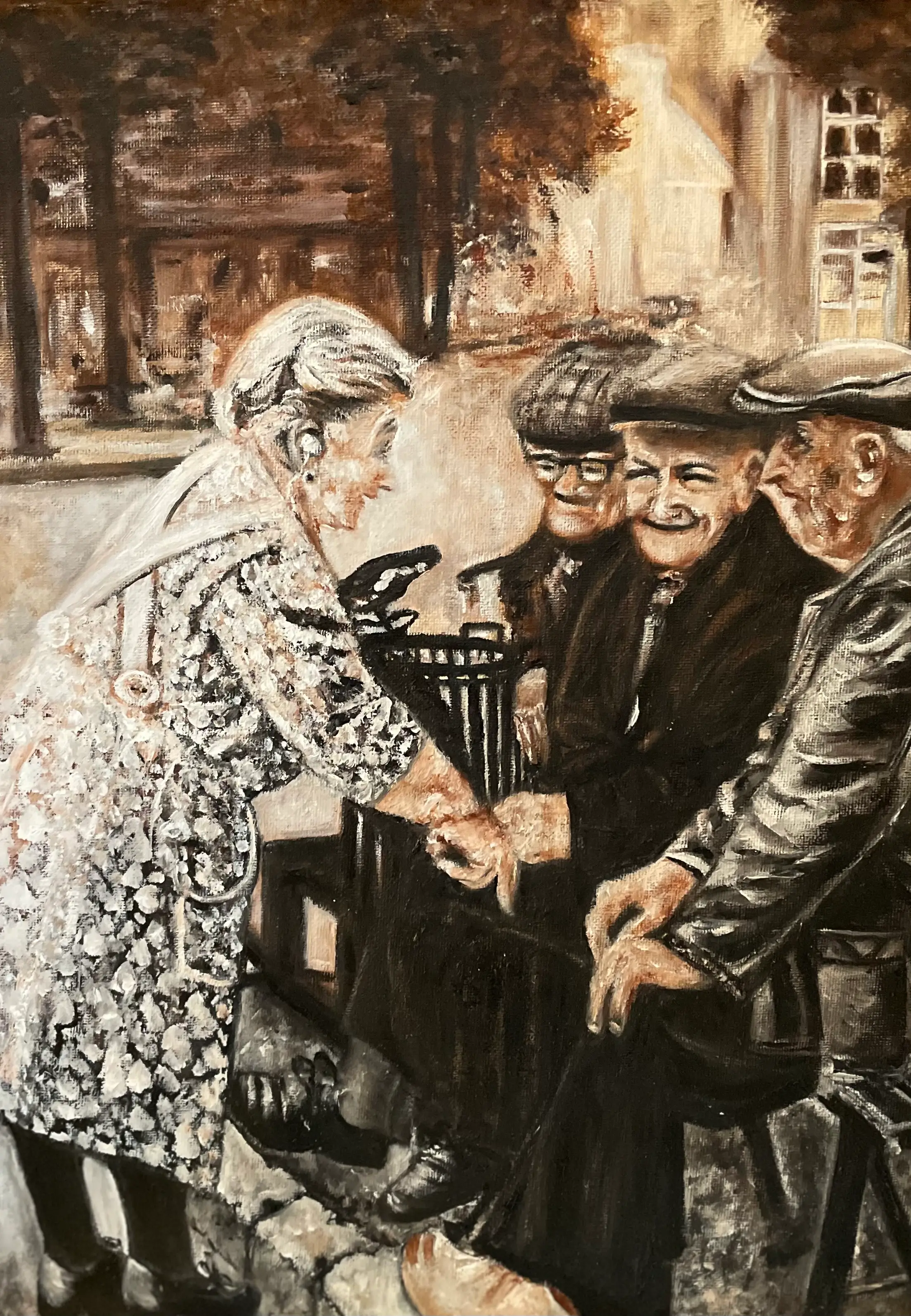 Een boeren echtpaar uit Best (N.B.). Zij leefde primitief zonder gas en elektriciteit, prachtig toen ik daar zelf een kijkje ben gaan nemen. Later heb ik daarom ook het hele beeld zoals hun toen leefde op het doek geschilderd in een serie met olieverf. Allemaal terug te vinden in deze gallerij.